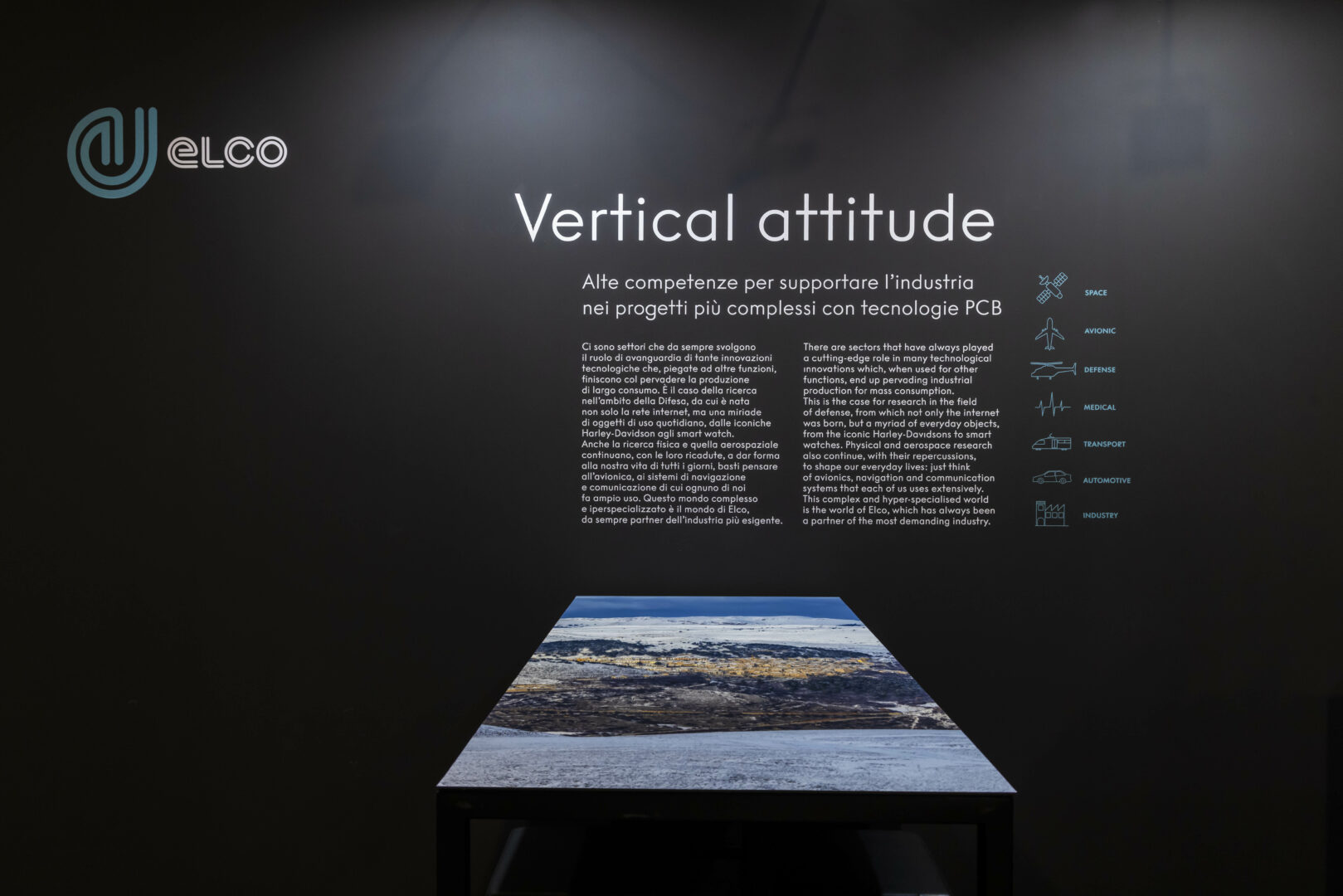Homina ha accompagnato Elco Group in un processo di rebranding ed exhibition design, affiancando l’azienda per quattro edizioni di Focus on Pcb, unico evento fieristico europeo dedicato al mondo dei circuiti stampati. Verticalità, innovazione costante, alta specializzazione e design su misura sono stati protagonisti di un allestimento dal grande impatto visivo, con contenuti fotografici e materici pensati distinguersi, coinvolgendo il visitatore nella brand experience con modalità inconsuete per il settore.
